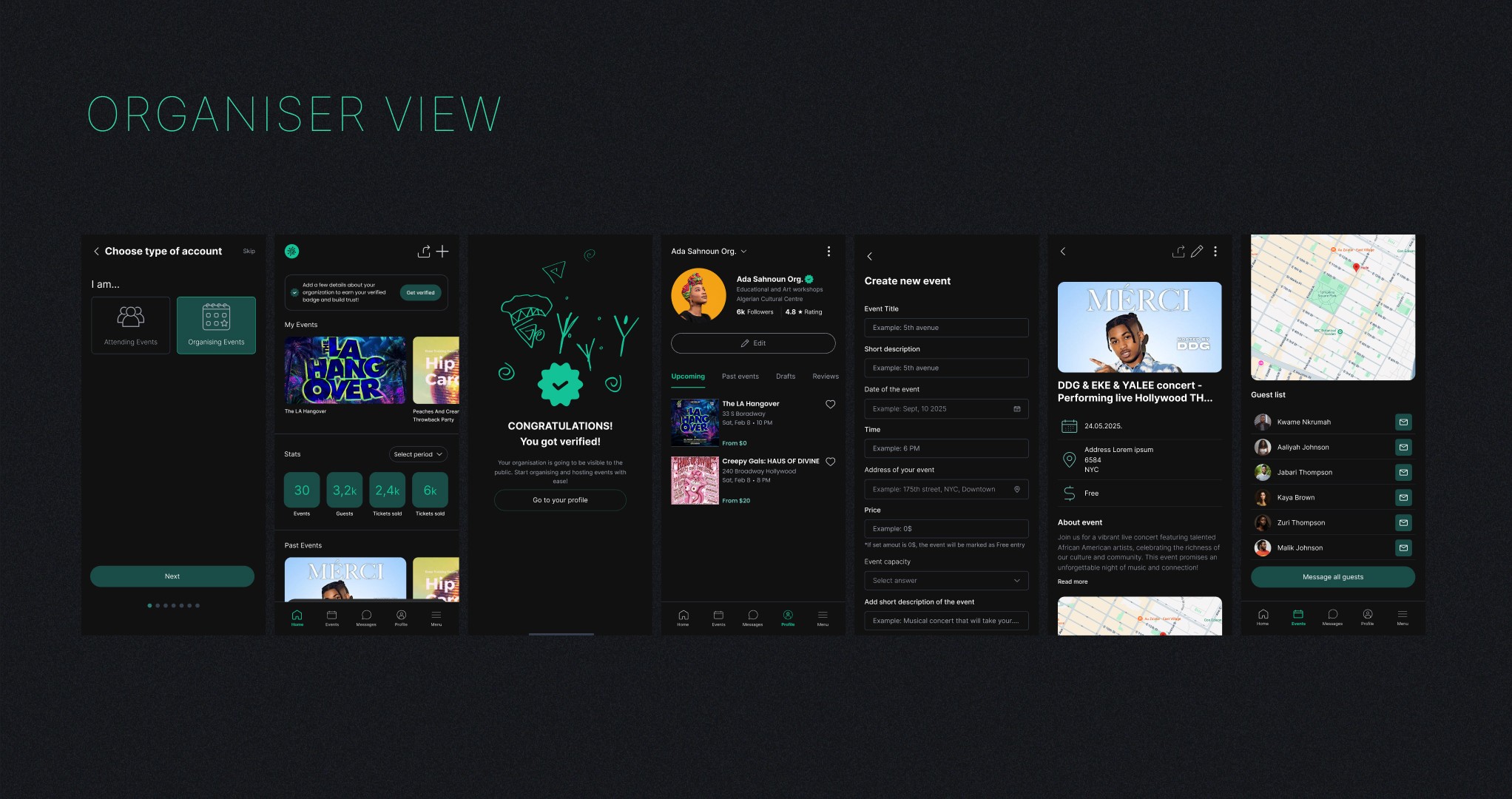 Organizer mode – create and manage events, track attendance, and engage with the community.