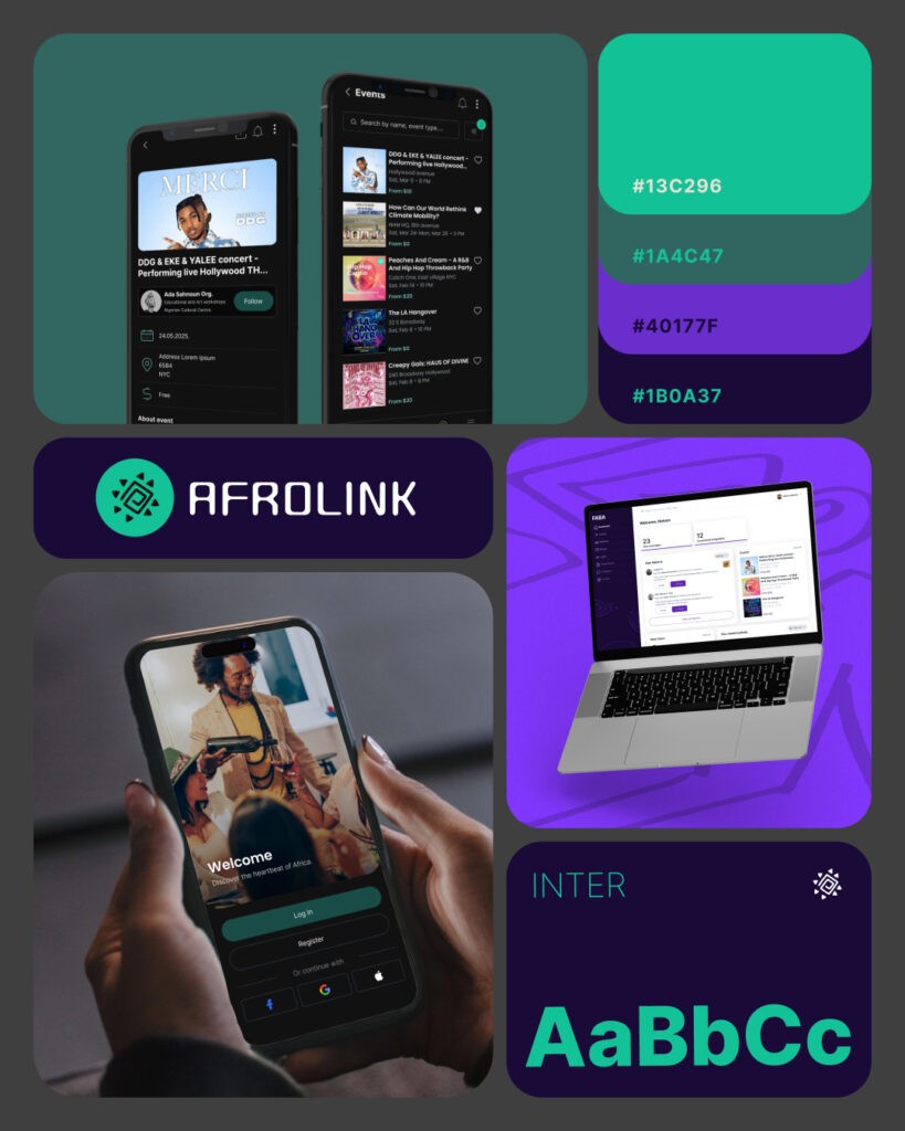 Alongside the UI design, we also created the Afrolink symbol, establishing a visual identity that reflects both community spirit and cultural pride.