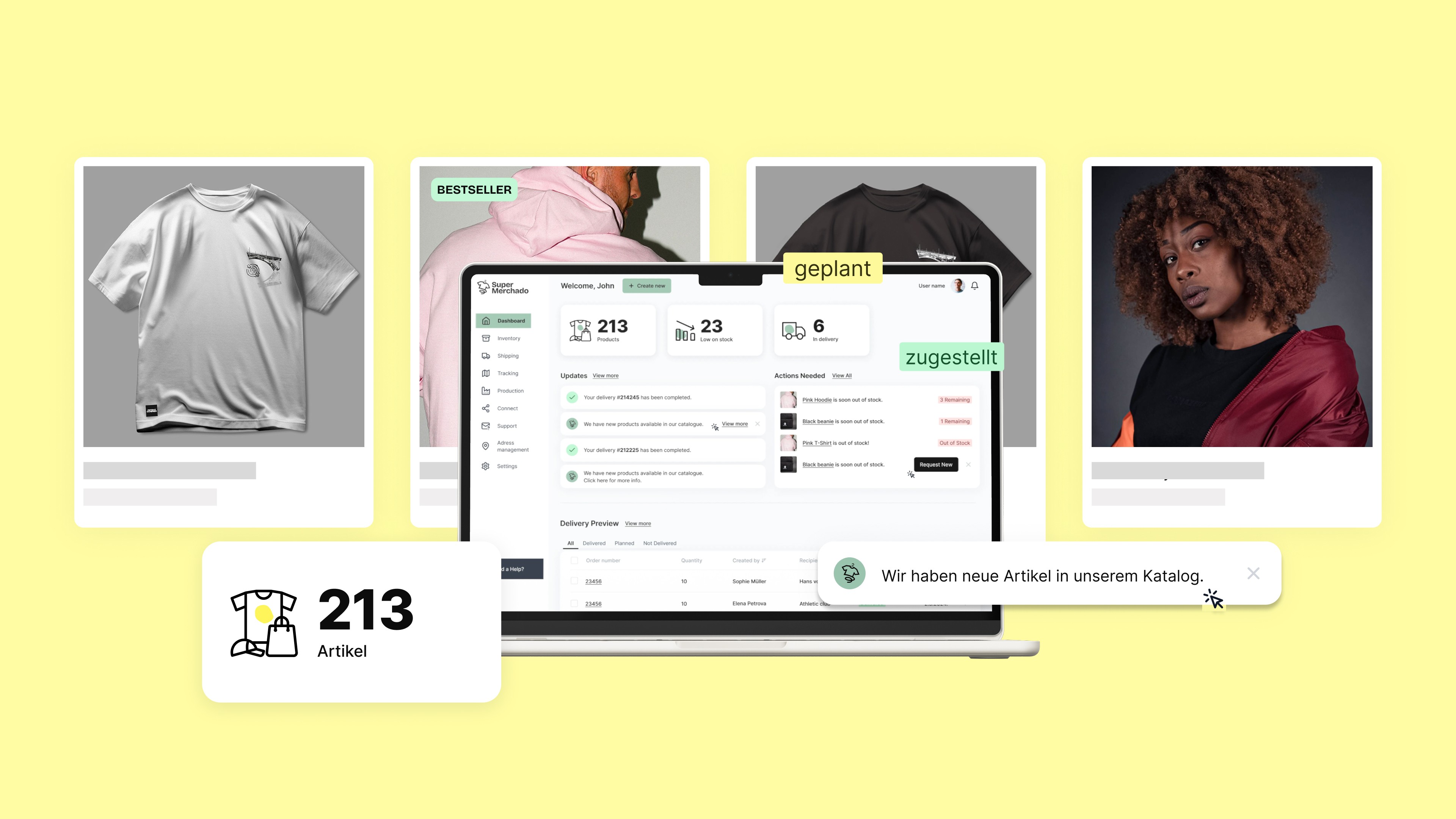 The web application serves as a digital warehouse and merchandise management tool, allowing users to: